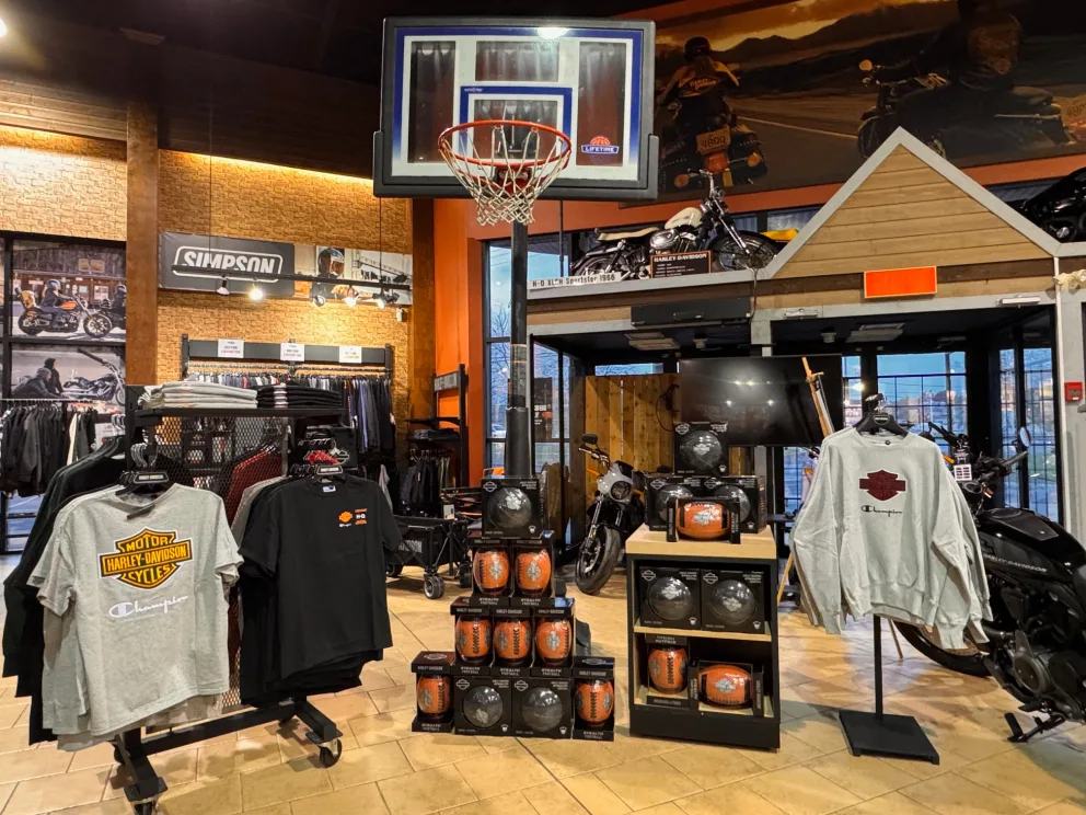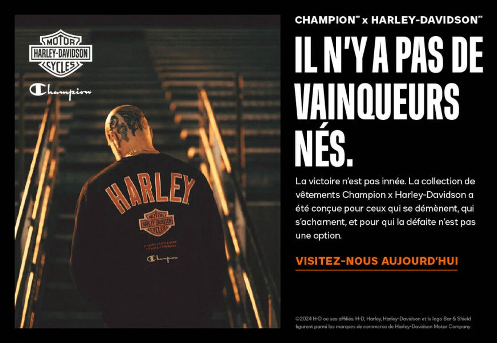 Certains vêtements de la collection Champion X Harley-Davidson sont disponibles en exclusivités chez Léo Harley-Davidson.