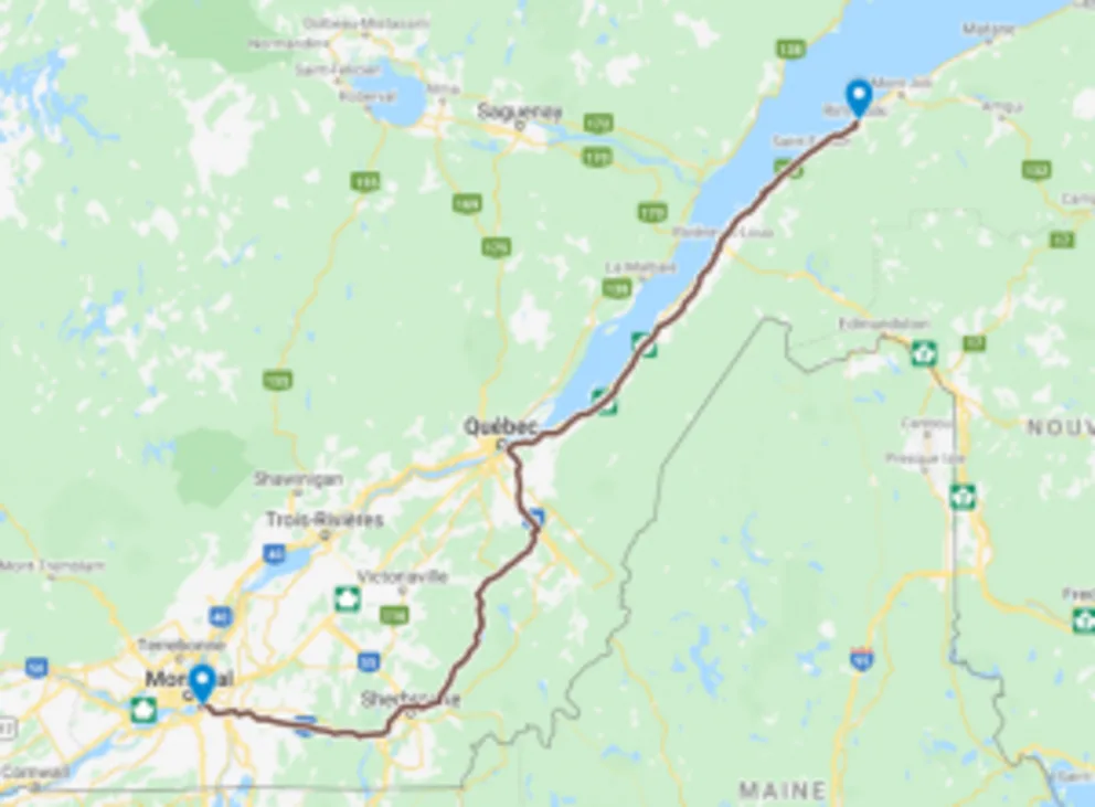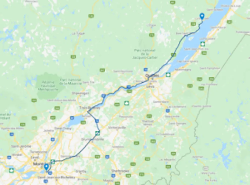 Au départ de Gaspé, on emprunte la route 132 jusqu’à Québec.