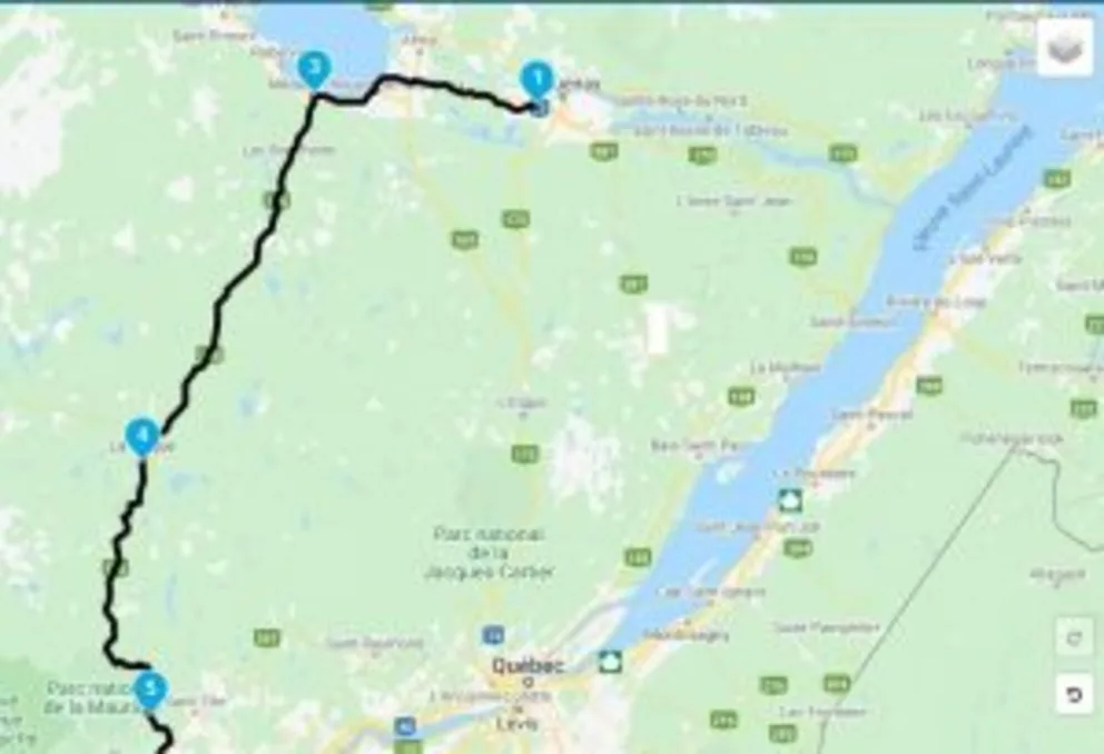 Départ - Hotel du Saguenéen, 2675 Boullevard Du Royaume à Chicoutimi. Direction Lac St-Jean tout en prenant la route 155 pour suivre la rivière du St-Maurice en passant par La Tuque, ensuite direction Trois-Rivières en prenant le pont Laviolette, après le pont prendre la route 132 Ouest et la suivre jusqu’à la sortie du blvd Matte à Brossard et se diriger chez Léo Harley-Davidson 8705 Boulevard Taschereau, Brossard