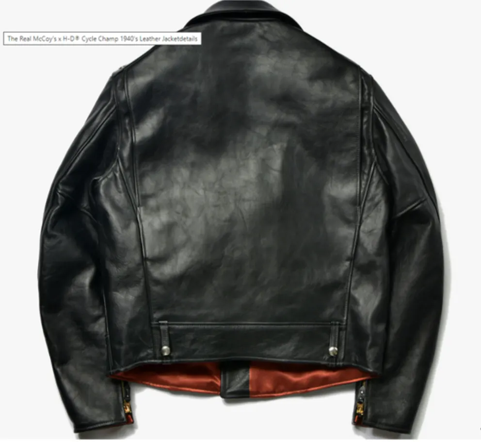 Disponible à la commande dès maintenant, la veste en cuir The Real McCoy's x HD Cycle Champ 1940's de HD Collections est vendue au prix de 2 400$ US.